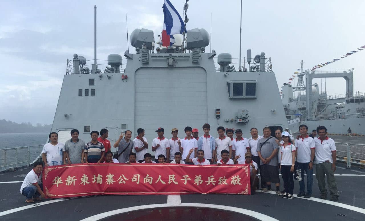 10月16日上午,中國海軍第二十三批護(hù)航編隊(duì)湘潭艦、舟山艦和巢湖艦在結(jié)束亞丁灣海域護(hù)航任務(wù)后,經(jīng)柬埔寨王家軍的邀請(qǐng),抵達(dá)柬埔寨西哈努克港,正式開始對(duì)柬埔寨進(jìn)行為期五天的友好訪問。得知祖國軍艦來訪的消息后,華新柬埔寨公司積極組織各部門骨干員工慰問艦上官兵。