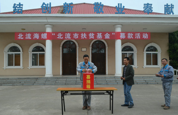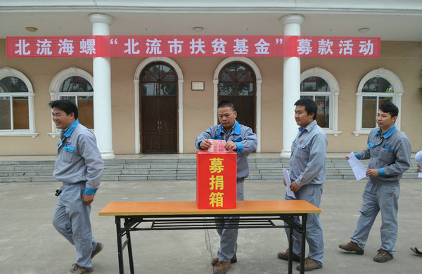 北流海螺自收到北流市政府“北流市扶貧基金會”倡議書以來,通過張貼倡議書、會議動員等方式進(jìn)行了廣泛宣傳,積極引導(dǎo),層層發(fā)動,讓廣大員工充分認(rèn)識到開展“北流市扶貧基金募捐”活動的重要意義,讓員工為北流市實施精準(zhǔn)扶貧工作添一份力。