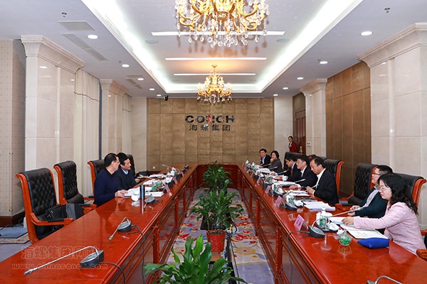 2016年11月19日,安徽省地稅局副局長洪曉建率省地稅局稽查局局長仇應廣、直屬局局長傅二林來海螺集團調研指導。海螺集團總經理任勇,副總經理齊生立、王建超,副總會計師張昇等熱情接待了洪副局長一行。