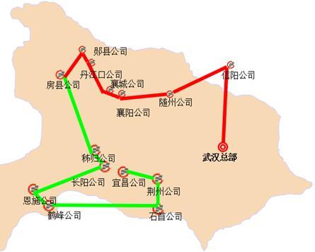 另外,賽事組委會(huì)還將“1000公里”的數(shù)字轉(zhuǎn)化為圖形,根據(jù)分公司的區(qū)域分布,共設(shè)定湖北東區(qū)線、湖北西區(qū)線、南部區(qū)域線、西部區(qū)域線、云南區(qū)域線、綜合線共6條虛擬路線圖,每條線路全長(zhǎng)統(tǒng)一為1000公里,各參賽團(tuán)隊(duì)每到達(dá)線路中的一個(gè)途經(jīng)點(diǎn),線條將由紅色轉(zhuǎn)為綠色,點(diǎn)圈由小變大,表示此段路線已完成。