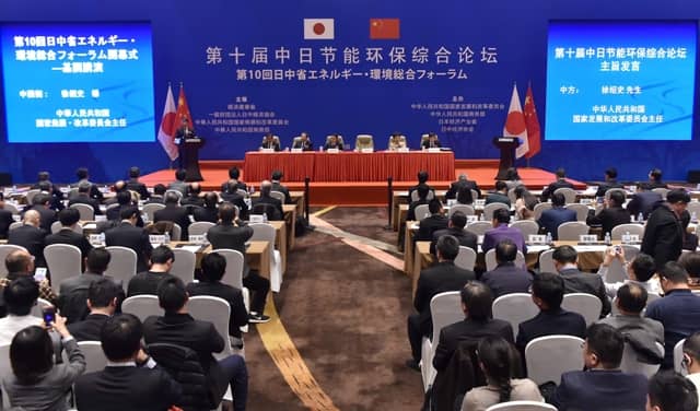 出席論壇的有中國國家發(fā)改委主任徐紹史、商務(wù)部副部長高燕、日本經(jīng)濟產(chǎn)業(yè)大臣世耕弘成、日中經(jīng)濟協(xié)會會長宗岡正二等來自中日兩國的政府官員、專家學(xué)者、企業(yè)家代表等800多人。論壇上中日雙方圍繞城市綠色發(fā)展、節(jié)能服務(wù)、循環(huán)經(jīng)濟、新能源汽車、火力發(fā)電、中日長期貿(mào)易等6個議題進行對接交流,共簽署合作項目29個。