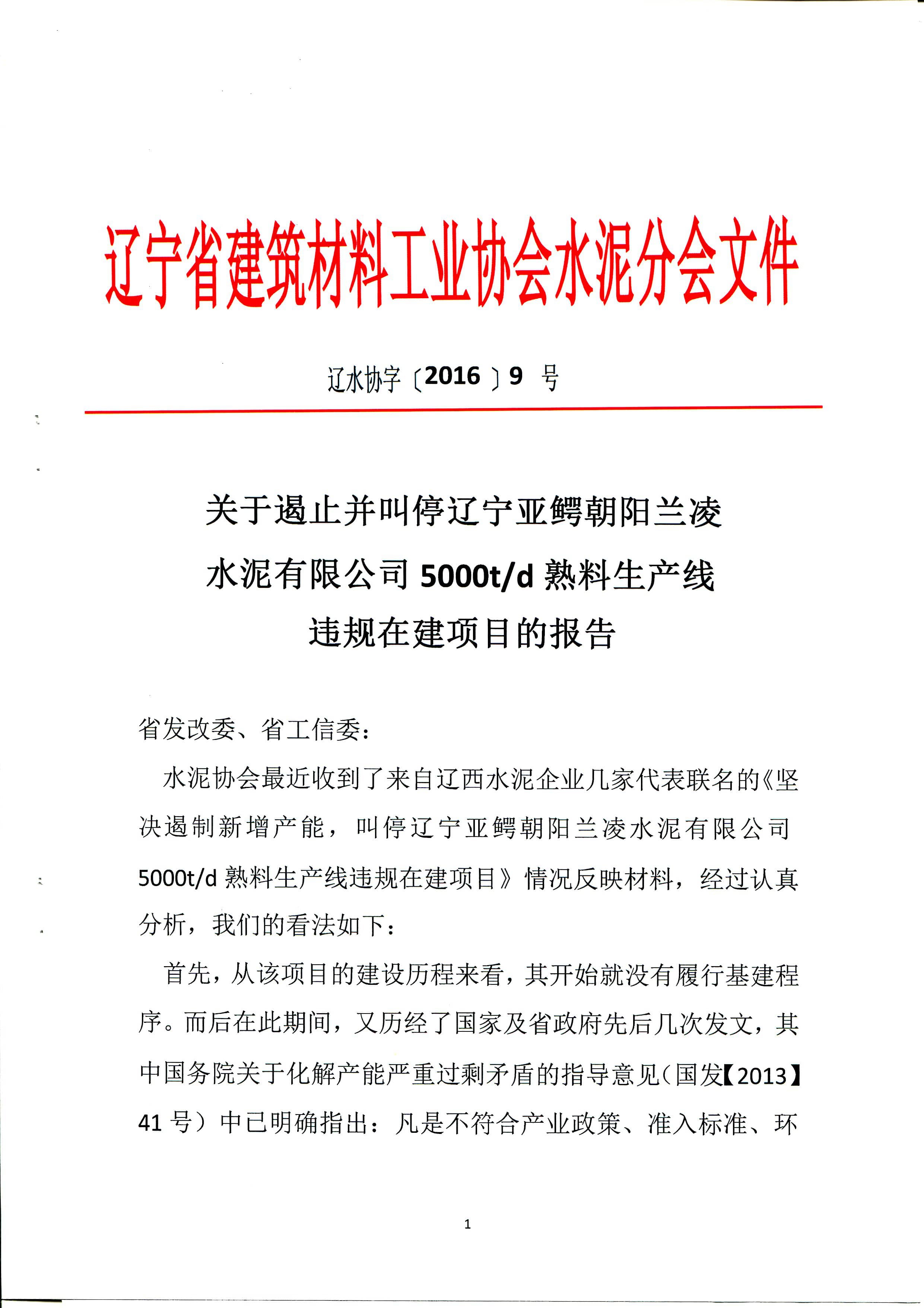 山水水泥、北方水泥、三鴿水泥、遼寧建材協(xié)會(huì)聯(lián)名舉報(bào)蘭凌水泥違規(guī)建線