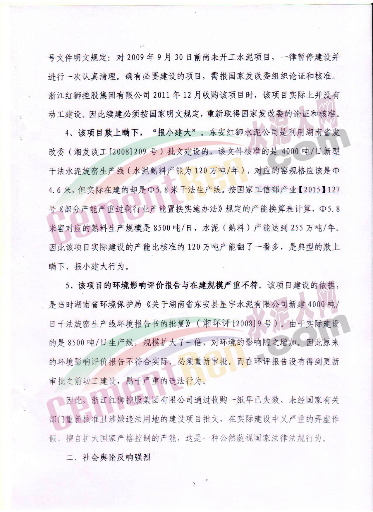 紅獅水泥違規(guī)建線被舉報(bào)