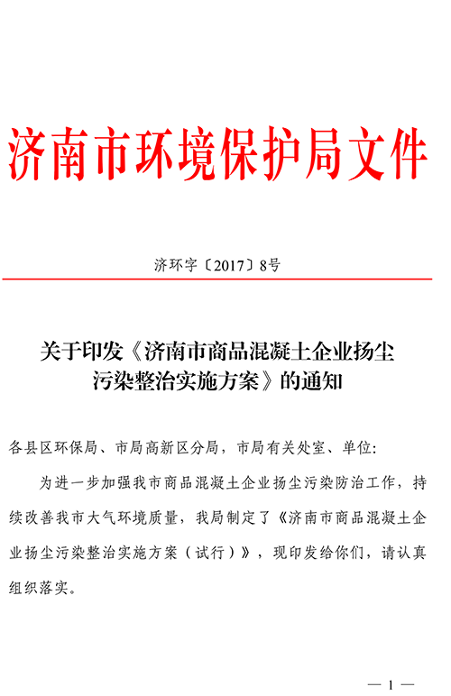 濟(jì)南市環(huán)境保護(hù)局關(guān)于印發(fā)《濟(jì)南市商品混凝土企業(yè)揚(yáng)塵污染整治實施方案》的通知 附 《濟(jì)南市商品混凝土企業(yè)揚(yáng)塵污染整治實施方案》