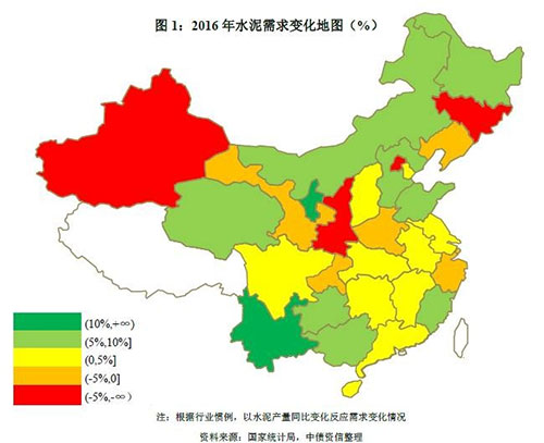 2016年在房地產(chǎn)明顯回暖及基建較好支撐疊加影響下水泥需求回暖,全年水泥需求同比增長(zhǎng)2.5%。分區(qū)域看,基建投資帶動(dòng)下西南地區(qū)云南水泥需求漲幅居全國首位,達(dá)17.80%,而得益于京津冀一體化戰(zhàn)略背景下房地產(chǎn)開發(fā)投資快速增長(zhǎng),華北地區(qū)河北水泥需求同比增長(zhǎng)9%。西北地區(qū)固定資產(chǎn)投資在前期持續(xù)高增長(zhǎng)后急速回調(diào),陜西、新疆需求下降較為明顯;東北地區(qū)受房地產(chǎn)投資乏力影響,遼寧、吉林水泥需求下降;華東長(zhǎng)三角區(qū)域基礎(chǔ)設(shè)施較為完善、城鎮(zhèn)化水平相對(duì)較高,基建投資增長(zhǎng)空間不大,2016年浙江水泥需求亦有所下調(diào)。