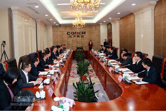 高登榜董事長(zhǎng)對(duì)周龍山主席的來(lái)訪表示歡迎。他說(shuō),2016年,本著“合作共贏、優(yōu)勢(shì)互補(bǔ)、互利互惠”的原則,華潤(rùn)水泥與海螺集團(tuán)簽署了戰(zhàn)略合作協(xié)議,雙方開展了很好的交流與合作,取得了不錯(cuò)成效。2017年,公司圍繞“一強(qiáng)三冠”發(fā)展目標(biāo),全力推進(jìn)公司的改革發(fā)展,希望在前期的合作基礎(chǔ)上,雙方進(jìn)一步強(qiáng)化溝通交流機(jī)制,探索更深層次的合作,把雙方的合作推上新的臺(tái)階。