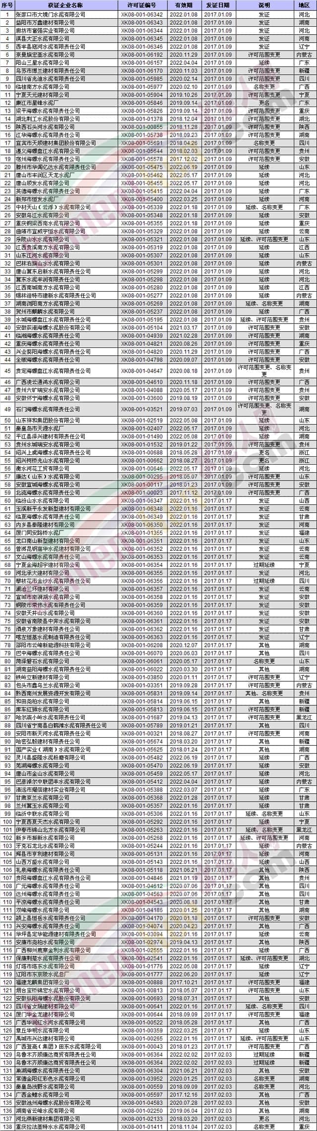 附:2017年1月至今質(zhì)量監(jiān)督檢驗(yàn)總局核發(fā)生產(chǎn)許可證的水泥企業(yè)名單