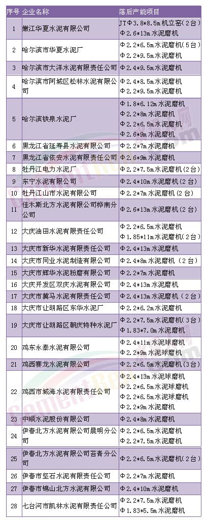 黑龍江水泥企業(yè)落后產(chǎn)能項目名單