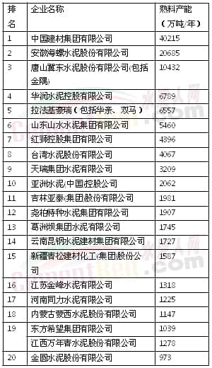 表1:2016年我國(guó)熟料產(chǎn)能前20強(qiáng)水泥企業(yè)名單