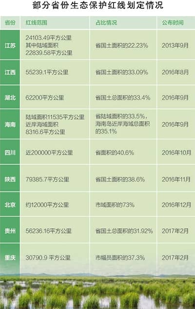 多數(shù)省份生態(tài)紅線保護(hù)區(qū)域面積占其轄區(qū)面積的三成以上,并配以嚴(yán)格的懲罰問(wèn)責(zé)機(jī)制