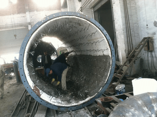 窯胴體鋼板厚度通常采用20、25、28、32毫米等幾種規(guī)格。為了增強(qiáng)水泥回轉(zhuǎn)窯胴體的剛性,減少?gòu)较蜃冃?,在大齒圈、輪帶處及回轉(zhuǎn)窯頭一段等受力較大極易變形的部位用較厚的鋼板,規(guī)格有40、50、60、65、75、90毫米的不等。也正因?yàn)椴煌瑥S家生產(chǎn)的回轉(zhuǎn)窯,以及回轉(zhuǎn)窯不同部位的壁厚不同,若用窯外徑來表示窯徑,就沒有統(tǒng)一標(biāo)準(zhǔn),因此窯徑在設(shè)計(jì)規(guī)范中特指回轉(zhuǎn)窯胴體的內(nèi)徑。