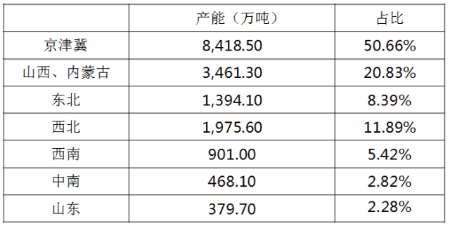 重組后產能合計1.67億噸,其中京津冀區(qū)域占比51%