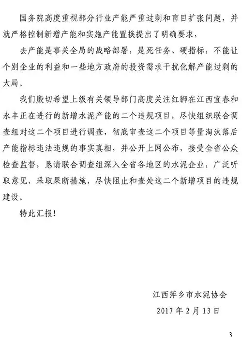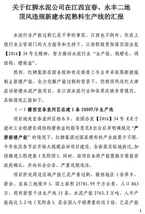 關(guān)于紅獅水泥公司在江西宜春、永豐二地涉嫌違規(guī)新建水泥熟料生產(chǎn)線的舉報材料如下: