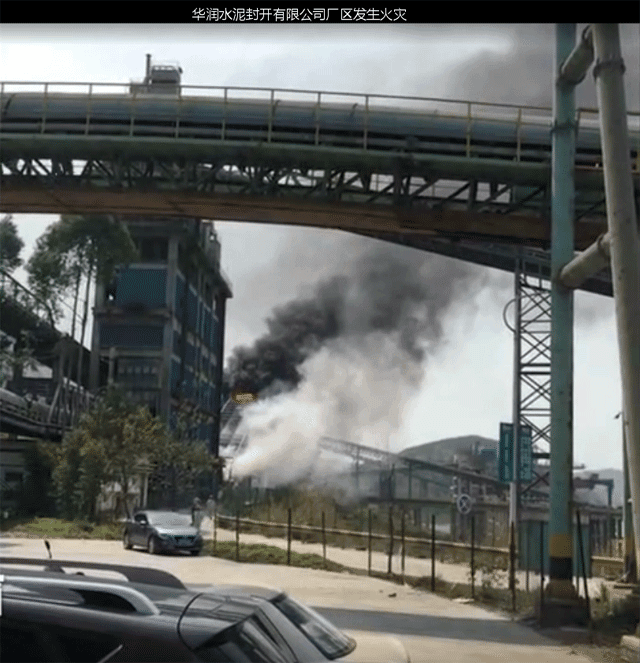 華潤(rùn)水泥(封開(kāi))廠(chǎng)區(qū)火災(zāi)事故現(xiàn)場(chǎng)