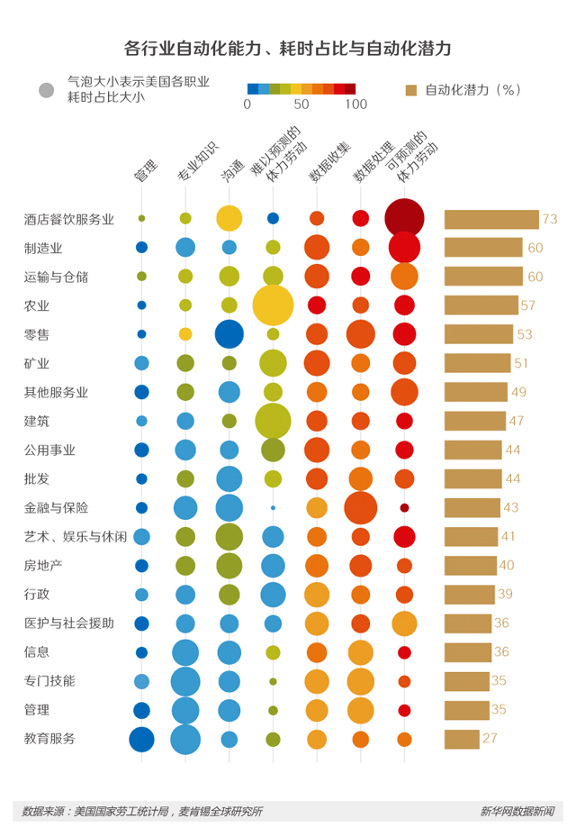 自二月以來(lái),全國(guó)各地招聘如火如荼。人力市場(chǎng)雖供需兩熱,但就業(yè)壓力大、人力成本高、招工難、就業(yè)難的矛盾依舊不容忽視。除了經(jīng)濟(jì)發(fā)展的客觀因素外,人工智能低調(diào) “入侵”的威力已開(kāi)始顯現(xiàn),部分自動(dòng)化潛力較大行業(yè)的就業(yè)人數(shù)已經(jīng)出現(xiàn)下降趨勢(shì)。