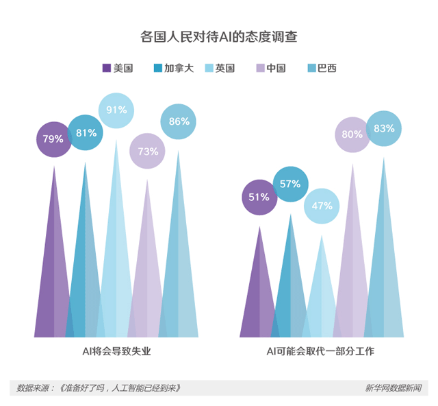 根據(jù)相關(guān)調(diào)查結(jié)果顯示,面對(duì)即將到來(lái)的人工智能時(shí)代,英國(guó)人對(duì)于自己的工作有強(qiáng)烈的危機(jī)感。相對(duì)來(lái)說(shuō),中國(guó)、巴西等新興市場(chǎng)國(guó)家對(duì)于人工智能帶來(lái)的挑戰(zhàn)保持相對(duì)樂(lè)觀。