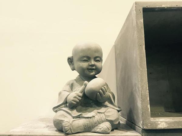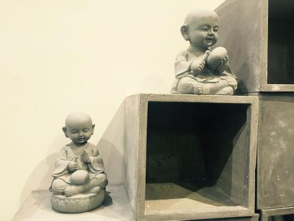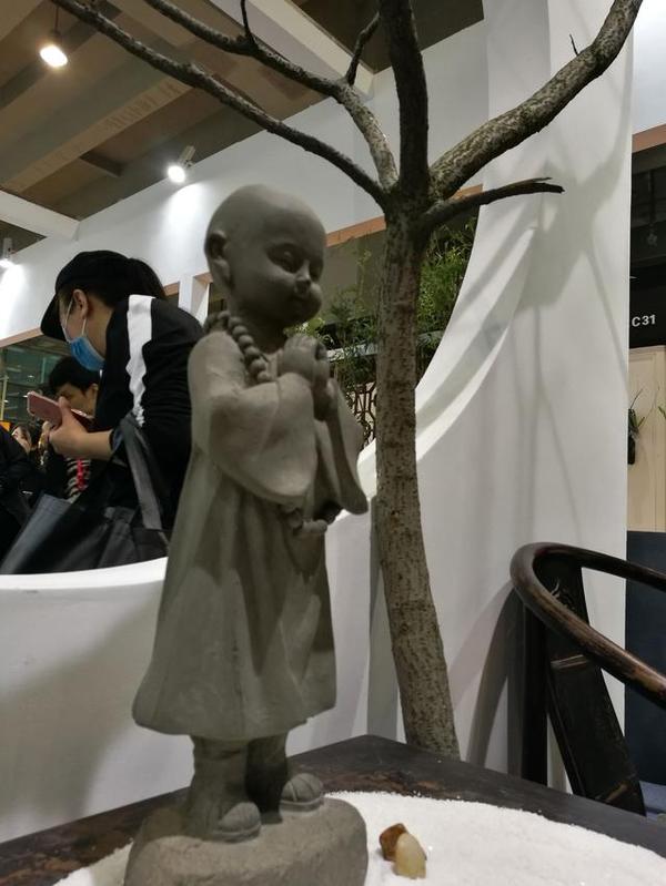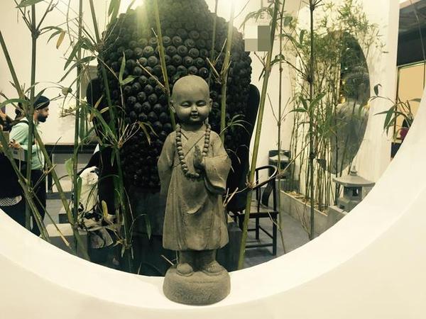 敲木魚的小僧童,造型是不是別有一番滋味。工作人員介紹,因水泥的可塑性,它可以任意制作出各色形狀。但根本上還是源于設計師的創(chuàng)作理念,這種僧侶類水泥工藝品目前在國內還是少有。