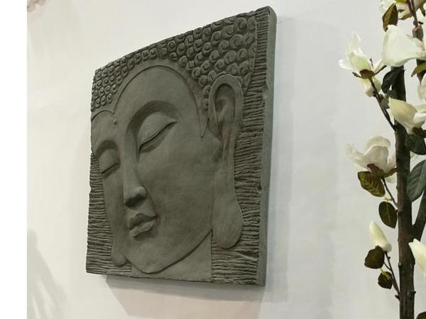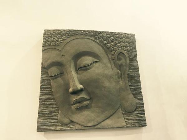 如圖,如來佛祖水泥掛像。工作人員稱:制作這樣的工藝品要求速度和制作水平,因標準水泥的初凝時間為45分鐘以內,所以基本一件作品要在45分鐘之內完工,不然水泥會初凝而失去可塑性。