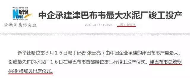 3月16日,中材國際海外公司承建的津巴布韋產(chǎn)量最大、設施最先進的水泥廠在津巴布韋首都哈拉雷舉行竣工投產(chǎn)儀式。津巴布韋總統(tǒng)穆加貝出席竣工投產(chǎn)儀式并講話。
