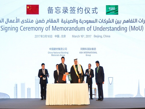 3月16日,在沙特國王薩勒曼訪華其間,中國建材集團(tuán)作為中方企業(yè)代表應(yīng)邀參加了在中國大飯店舉行的中沙投資論壇系列活動(dòng)。集團(tuán)董事長宋志平應(yīng)薩勒曼國王的特別邀請(qǐng)出席了商界領(lǐng)袖閉門會(huì)議。論壇上,中國建材集團(tuán)與沙特ASK集團(tuán)簽署了戰(zhàn)略合作協(xié)議,受宋志平董事長委托,集團(tuán)副總經(jīng)理黃安中代表公司與沙特ASK集團(tuán)總裁簽署協(xié)議。
