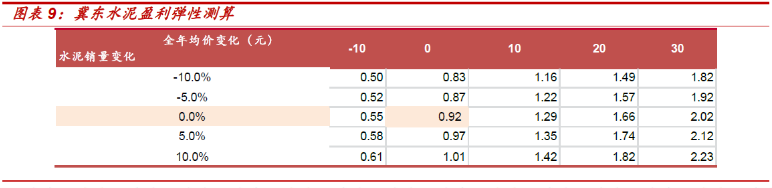 冀東水泥盈利彈性測算:
