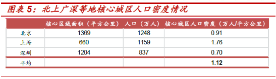 我們對比北上深等地核心人口密度,我們認(rèn)為10年后雄安新區(qū)的遷入人口可能在300萬左右,總計常住人口將達(dá)到500萬。