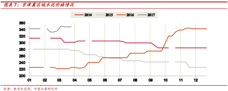 從價格角度看,華北區(qū)域水泥價格隨著區(qū)域內(nèi)供需格局的改善,2016年年中開始出現(xiàn)明顯提升。4月2日開始,華北水泥價格再漲50元/噸,為全年盈利大幅好轉(zhuǎn)奠定堅實基礎(chǔ)。