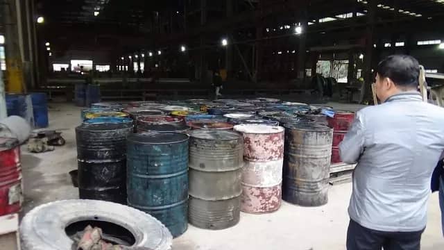 執(zhí)法人員在該單位現(xiàn)場(chǎng)發(fā)現(xiàn)一批廢油桶