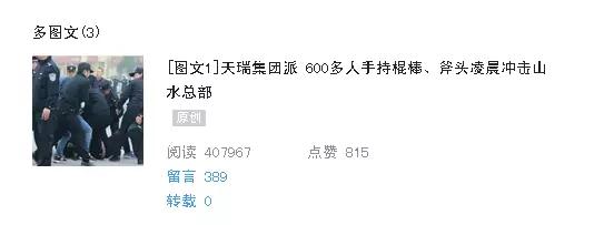 日前,水泥人網(wǎng)發(fā)布了一篇《天瑞集團派 600多人手持棍棒、斧頭凌晨沖擊山水總部》的文稿。該事件引起了社會各界的強烈關(guān)注,截止目前,閱讀量已經(jīng)超過40萬。以下為后臺截圖: