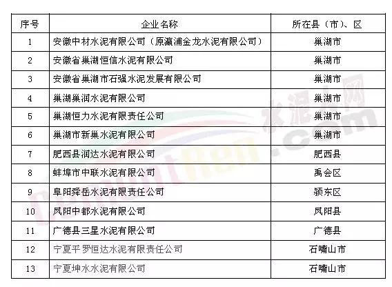 圖:安徽、寧夏2017年強制性清潔生產(chǎn)審核水泥企業(yè)名單