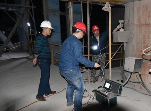 記者跟隨檢查一組乘車來到2號窯爐旁,發(fā)現(xiàn)處于停產(chǎn)狀態(tài),執(zhí)法人員調(diào)轉(zhuǎn)車頭,直奔該公司1號窯爐。20點52分,在1號窯爐,生產(chǎn)水泥的機械發(fā)出轟隆隆的聲響,透過低矮的路燈能看到窯爐在冒煙。3名執(zhí)法人員從車后備箱取下監(jiān)測設備,爬到幾十米高的窯尾處,現(xiàn)場對窯爐所排出的廢氣進行監(jiān)測。中方縣環(huán)保監(jiān)測站副站長陳欣介紹,這里主要是測試二氧化硫、氮氧化物和煙塵,連續(xù)監(jiān)測6次。煙氣實測后儀器會自動保存數(shù)據(jù),煙塵用濾筒收集后,要拿到實驗室稱重分析,明天才能出結(jié)果。實測結(jié)果出來后,還要與水泥廠同時段的在線監(jiān)控數(shù)據(jù)進行對比。