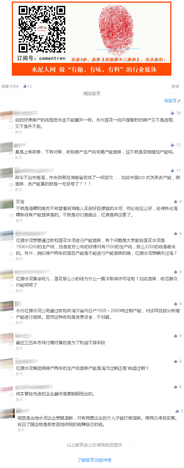 水泥人網(wǎng)向湖南省水泥協(xié)會(huì)了解此事的詳情及行業(yè)協(xié)會(huì)對(duì)此事的看法:湖南省水泥協(xié)會(huì)答復(fù)對(duì)此事毫不知情,且至今未收到有關(guān)部門對(duì)永州紅獅舉報(bào)的正式回復(fù),不清楚紅獅水泥將如何進(jìn)行產(chǎn)能置換,如果只是利用其新收購(gòu)的永州蓮花水泥2500噸/日生產(chǎn)線進(jìn)行置換,對(duì)于削減湖南的過(guò)剩產(chǎn)能毫無(wú)用處,因?yàn)樵撋a(chǎn)線早在2015年就已經(jīng)停產(chǎn)。