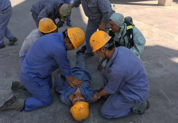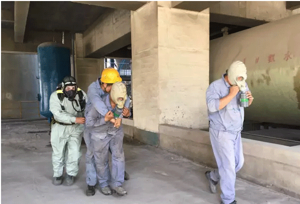熟料分廠廠長宋杰明擔任本次應急救援演練總指揮,并由救護組、搶險組、警戒組、現(xiàn)場清理組和后勤保障組構(gòu)成演練框架。演練模擬一名職工巡檢時發(fā)現(xiàn)6#氨水罐區(qū)因發(fā)生氨水泄漏導致一人暈倒在地。因情況未明,立即用對講機向生產(chǎn)值班長報告,接到報告后,值班長迅速趕往事故現(xiàn)場,由于氨水氣味較濃,無法近距離查看,初步判斷為現(xiàn)場發(fā)生氨水泄漏。并立即向分廠匯報:宋廠長,6#氨水罐區(qū)發(fā)生氨水泄漏,有一名員工暈倒,因氣味較濃,無法進入施救,請指示。宋廠長接到報告后,一邊趕往事故現(xiàn)場,一邊通知分廠安全員迅速啟動應急預案組織實施緊急救援。接到通知的各應急小組快速在6#窯三檔東側(cè)集合,并在總指揮的統(tǒng)一調(diào)度指揮下迅速展開人員疏散、搶救傷員、現(xiàn)場警戒、堵漏搶險、消防救援等應急措施。整個演練過程緊張有序,各小組行動迅速,對問題處理果斷。最后,現(xiàn)場清理組組長白海兵向總指揮報告:總指揮,已對泄漏氨水進行了回收,地面殘留氨水已用消防水進行了稀釋中和處置,隱患已消除,請指示。總指揮:返回原地待命。總指揮接到各小組組長完成救援報告后,命令各小組組長清點各自人數(shù)。至此,本次應急救援任務圓滿完成。