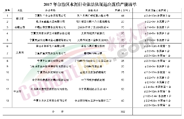 為認(rèn)真貫徹落實(shí)工業(yè)和信息化部等 16 部門(mén)《關(guān)于利用綜合標(biāo)準(zhǔn)依法依規(guī)推動(dòng)落后產(chǎn)能退出的指導(dǎo)意見(jiàn)》(工信部聯(lián)產(chǎn)業(yè)〔2017〕30 號(hào))、《自治區(qū)人民政府辦公廳轉(zhuǎn)發(fā)自治區(qū)經(jīng)濟(jì)和信息化委關(guān)于利用綜合標(biāo)準(zhǔn)依法依規(guī)推動(dòng)落后產(chǎn)能退出實(shí)施意見(jiàn)的通知》(寧政辦發(fā)〔2017〕105 號(hào))精神,現(xiàn)將全區(qū)水泥行業(yè)直徑 3 米以下水泥粉磨設(shè)備列入 2017 年工業(yè)行業(yè)依法依規(guī)退出落后產(chǎn)能范圍,并將任務(wù)下達(dá)至銀川市、石嘴山市、吳忠市、中衛(wèi)市人民政府。