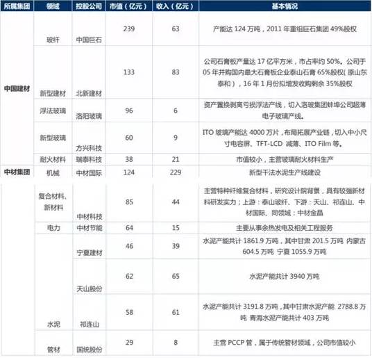 中國建材和中材集團在水泥、玻璃纖維等多個業(yè)務板塊具有重合之處,中國建材擅長水泥、玻璃、輕質建材、玻璃纖維等建筑材料,而中國中材擅長非金屬材料制造業(yè)、非金屬材料技術裝備與工程業(yè)、非金屬礦業(yè)三大產業(yè),通過業(yè)務重組,兩大集團通過優(yōu)勢互補可以有效提高綜合競爭實力。