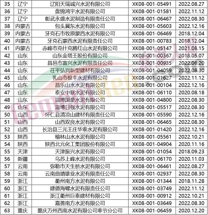 【水泥人網(wǎng)】9月9日晚間,國家質(zhì)檢總局發(fā)布8月份第6~9批獲證企業(yè)名單。經(jīng)過整理,水泥人網(wǎng)發(fā)現(xiàn),在本次公布的獲證企業(yè)名單當(dāng)中,包括63家水泥企業(yè),其具體名單如下圖所示:
