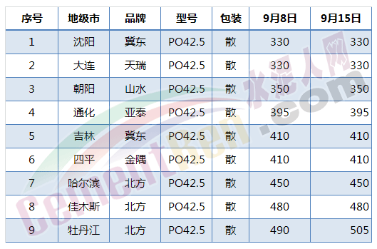 表2 東北地區(qū)及其周邊水泥價格