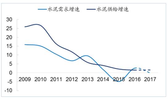 水泥行業(yè) 2009 年以來(lái)供求增速變動(dòng)情況