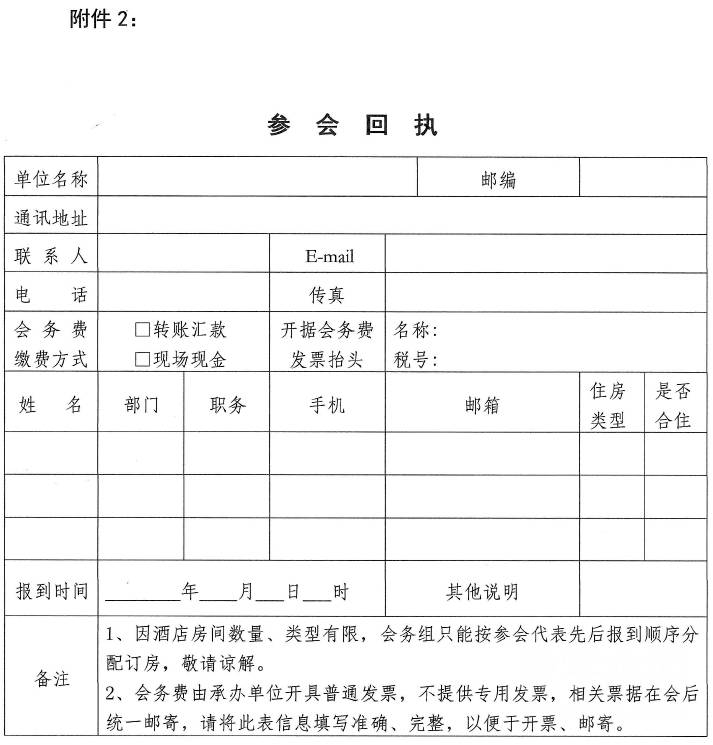 4、會議回執(zhí)請于2017年10月9日前傳真或電子郵件至會務組。