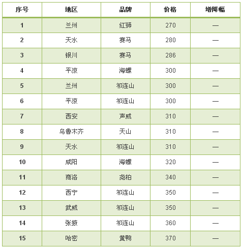 西北地區(qū),區(qū)域主導(dǎo)企業(yè)祁連山水泥,堯柏水泥等為維持市場(chǎng)穩(wěn)定做出了表率。本周西北地區(qū)價(jià)格方面暫無大的調(diào)整。