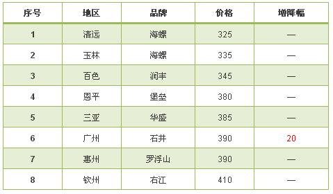 華南地區(qū),本周價(jià)格趨穩(wěn),僅廣州地區(qū)有小幅上漲。華南區(qū)域內(nèi)臺(tái)泥國(guó)際英德廠房臨時(shí)停產(chǎn)應(yīng)在短期內(nèi)對(duì)華潤(rùn)水泥有利。