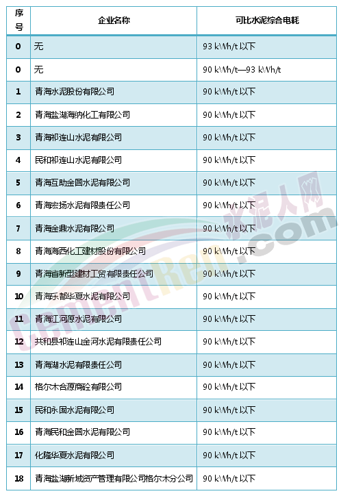 青海省水泥企業(yè)(含粉磨站)2016年度電耗核定結(jié)果