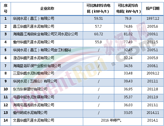 全省被列入核查的水泥企業(yè)14家,其中文昌華盛天涯水泥有限公司因2016年度停產(chǎn)未開展核查外,其他13家企業(yè)均配合完成了核查任務(wù)。2016年,全省13家水泥企業(yè)共生產(chǎn)熟料1510萬噸、水泥2182萬噸,用電量合計16.8億千萬時。