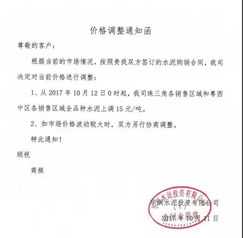 昨日(11日)珠三角多家企業(yè)發(fā)布提價(jià)通知稱水泥出廠價(jià)在原基礎(chǔ)上提高了15元/噸;陜西地區(qū)多家企業(yè)也于昨日發(fā)布價(jià)格調(diào)整通知,水泥價(jià)格在原基礎(chǔ)上上調(diào)30元/噸。