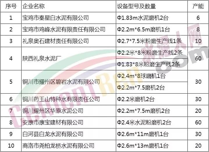 據(jù)水泥人網(wǎng)從陜西省工業(yè)和信息化廳產(chǎn)業(yè)政策與法規(guī)處了解,10月16日陜西省工業(yè)和信息化廳發(fā)布《關(guān)于2017年陜西省淘汰落后產(chǎn)能企業(yè)名單的公告》,其中包括10家水泥企業(yè),5條粉磨生產(chǎn)線,14臺(tái)磨機(jī),總產(chǎn)能為274萬噸/年,將于12月底之前完成淘汰落后產(chǎn)能任務(wù)。