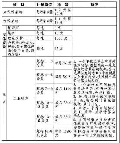 同時,本次環(huán)保稅法列出了環(huán)保稅征稅目的及稅額,強(qiáng)調(diào)了大氣和水污染物的稅額由省級政府確定,報經(jīng)省級人大常委會決定。具體參考如下:
