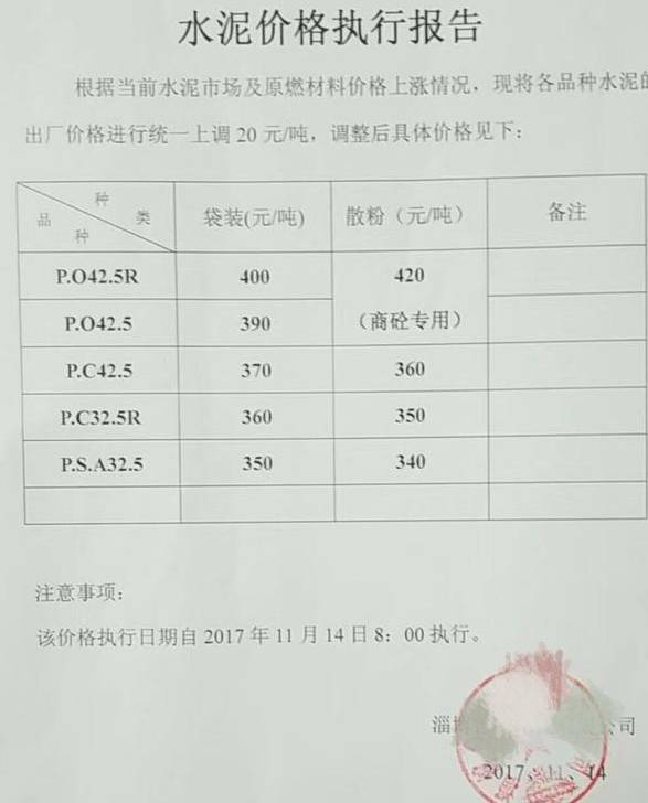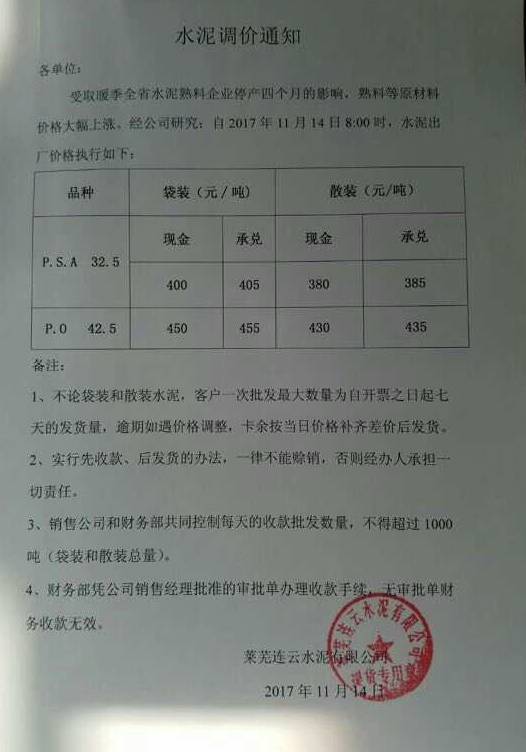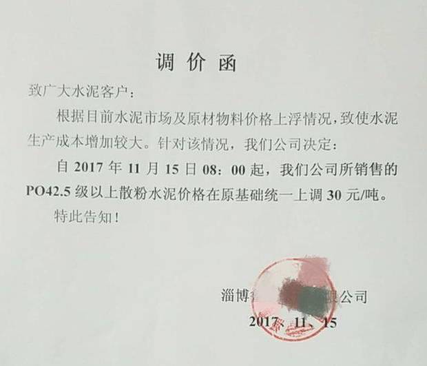 山東水泥企業(yè)調(diào)價(jià)通知