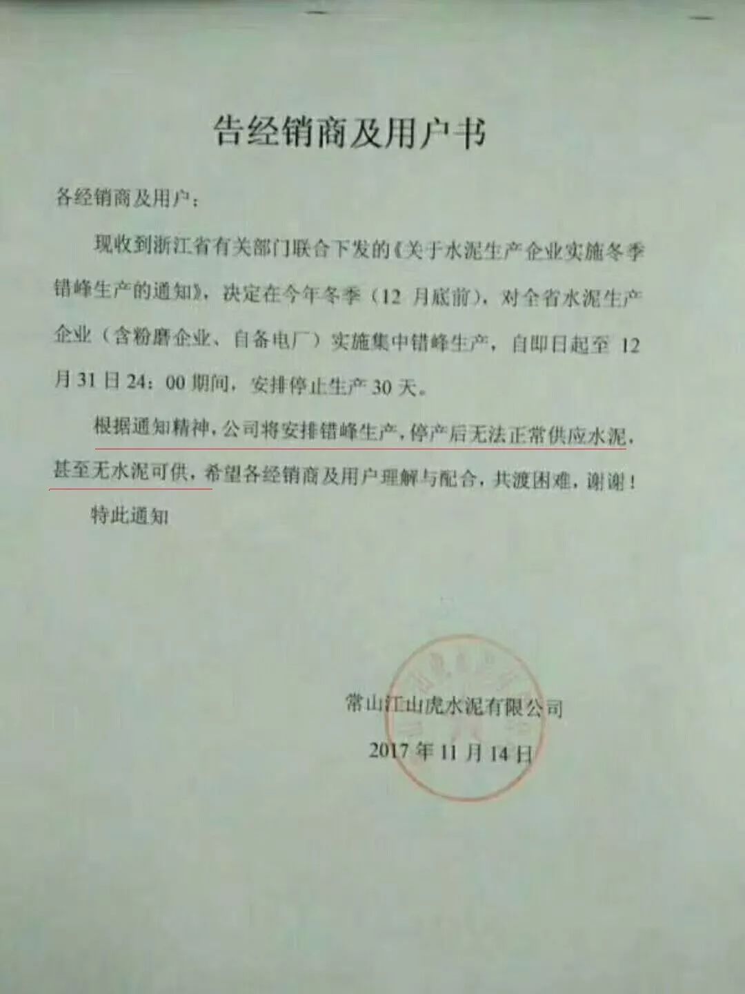 江山虎水泥通知