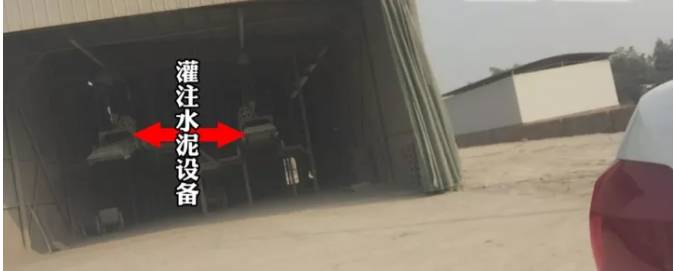 這家企業(yè)白天休息,晚上開工。加工廠大車間里有兩臺灌注水泥的設備,地上也積滿了水泥灰,地上和樓上堆了幾堆坪塘牌水泥和南方水泥的包裝袋。