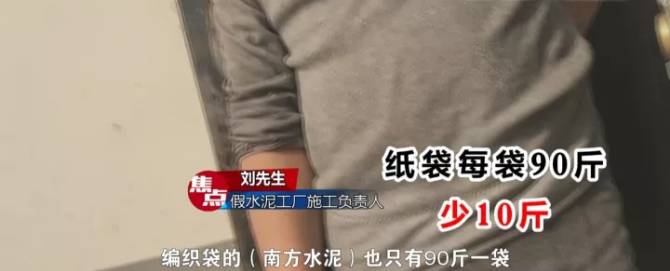 除了質(zhì)量低劣以外,假水泥還缺斤少兩。水泥行業(yè)通常是每包一百斤,20包水泥作為一噸來計算,但這里每包水泥都少幾十斤。